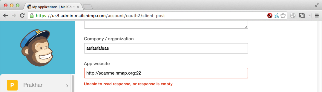 About two weeks ago I found an OAuth based bug that affected Facebook, which since then got patched by their security team and I got some reward for that. This OAuth bug relied on an endpoint which was connected to MailChimp. So I was testing the OAuth2 implementation on MailChimp as the endpoint used by Facebook was connected to MailChimp, while fiddling around with redirect_uri input area provided by MailChimp I found that the web application tried to connect with the URL provided in redirect_uri. So this was something interesting based on the observations below I was able to confirm that the web application was vulnerable to SSRF/XSPA.